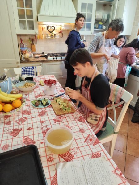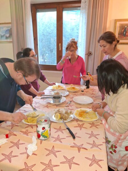 Le sessioni si svolgeranno settimanalmente presso le cucine dei partecipanti, con ingredienti freschi acquistati autonomamente dall’ospitante. Durante ogni incontro di circa due ore, i partecipanti lavoreranno insieme nella preparazione delle merende, dall’uso dei fornelli alla creazione delle ricette, alla pulizia e alla condivisione finale dei piatti, arricchito da musica, giochi e buona compagnia. L’ambiente rilassato favorirà l’interscambio sociale e la creazione di nuove amicizie, oltre allo sviluppo di competenze pratiche e trasversali. Ogni partecipante sarà coinvolto attivamente: dalla preparazione alla pulizia e al momento di condividere la merenda, arricchito da musica, giochi in un clima rilassato, che favorirà le relazioni interpersonali, creando opportunità per approfondire amicizie esistenti o farne di nuove.